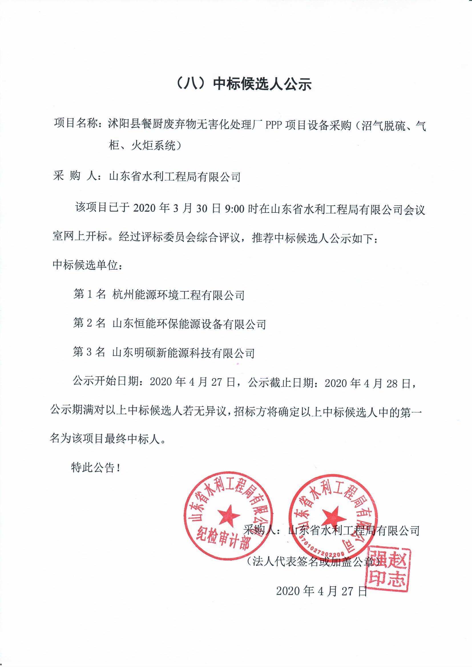 沭陽縣餐廚廢棄物無害化處理廠PPP項(xiàng)目設(shè)備采購中標(biāo)候選人公示