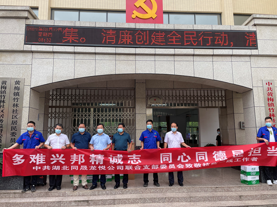 8月12日,湖北同晟龍悅公司聯(lián)合黨支部向黃梅縣大河鎮(zhèn)政府送去醫(yī)用酒精、礦泉水、方便面等抗疫物資,并組織職工投身抗疫一線,積極參與政府組織的疫情排查工作,彰顯國有企業(yè)的社會責任擔當。